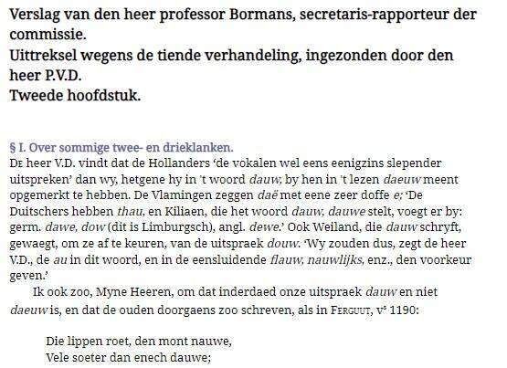 Maar dat was een werk van heel lange adem want de zere tenen van Vlamingen en noorderburen, die moesten ontweken worden, waren talrijker dan de woorden waarvoor men een eenvormige schrijfwijze zocht. In zijn streven naar aansluiting bij de Noord-Nederlandse schrijfwijze wilde hij verdergaan dan andere vooraanstaande Vlaamse commissieleden als Willems (het Willemsfonds) en Jan-Baptist David (het Davidsfonds). Maar omdat het schrijven van zijn verslag bijna twee jaar aansleepte, zagen de anti-Hollandse taalprotestanten de kans om zich sterker tegen de voorstellen van de commissie te weren, en dus werd het initiatief op zeer, zeer lange baan geschoven. Het rapport van Bormans bracht zoveel commotie teweeg, dat men besloot een taalcongres te houden voor Vlaamse letterkundigen om de spellingskwestie te beslechten.