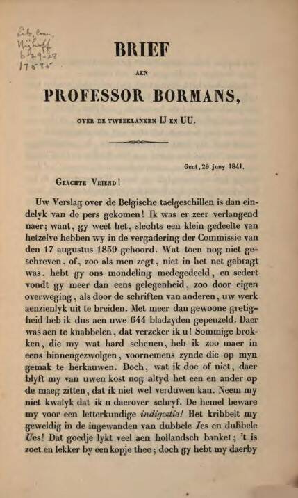 In 1835 werd Jan-Hendrik Bormans hoogleraar Nederlandse en later Griekse letteren aan de Rijksuniversiteit Gent (1835-1837). Daar kwam hij in contact met Gentse flaminganten en groeide zijn interesse voor het Middelnederlands. Hij werd vervolgens hoogleraar klassieke talen aan de Rijksuniversiteit Luik 1837-1865, vanaf 1851 ook Nederlands. Lid van de Koninklijke Academie voor Wetenschappen, Letteren en Schone Kunsten in 1847. Als lid van de Spellingscommissie was hij de promotor voor de eenmaking van de Noord- en Zuid-Nederlandse spelling: eindelijk zou men Nederlands hetzelfde gaan schrijven in Vlaanderen en Nederland.